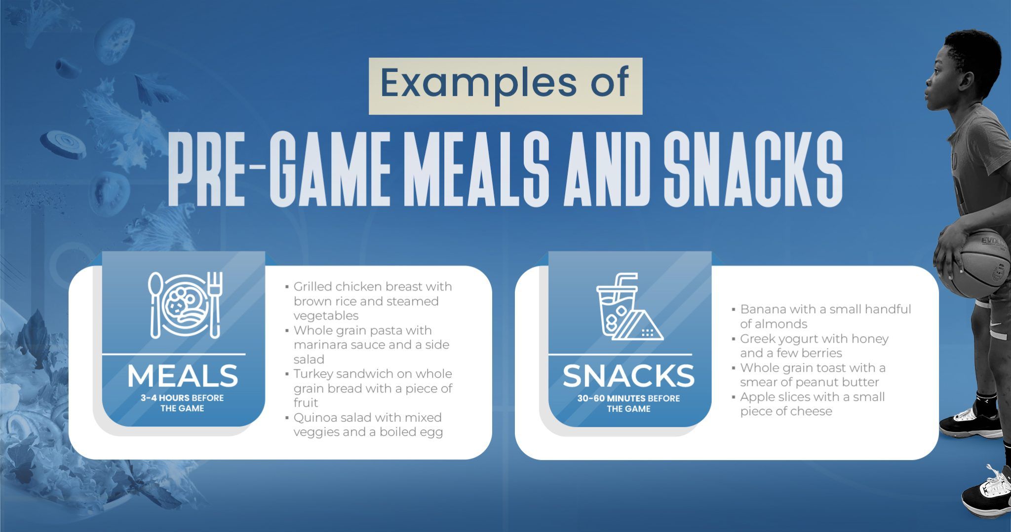 The timing and composition of pre-game meals are crucial for ensuring you have the energy and stamina needed to perform your best. Aim to eat a balanced meal 3-4 hours before the game, and a light snack 30-60 minutes before tip-off.